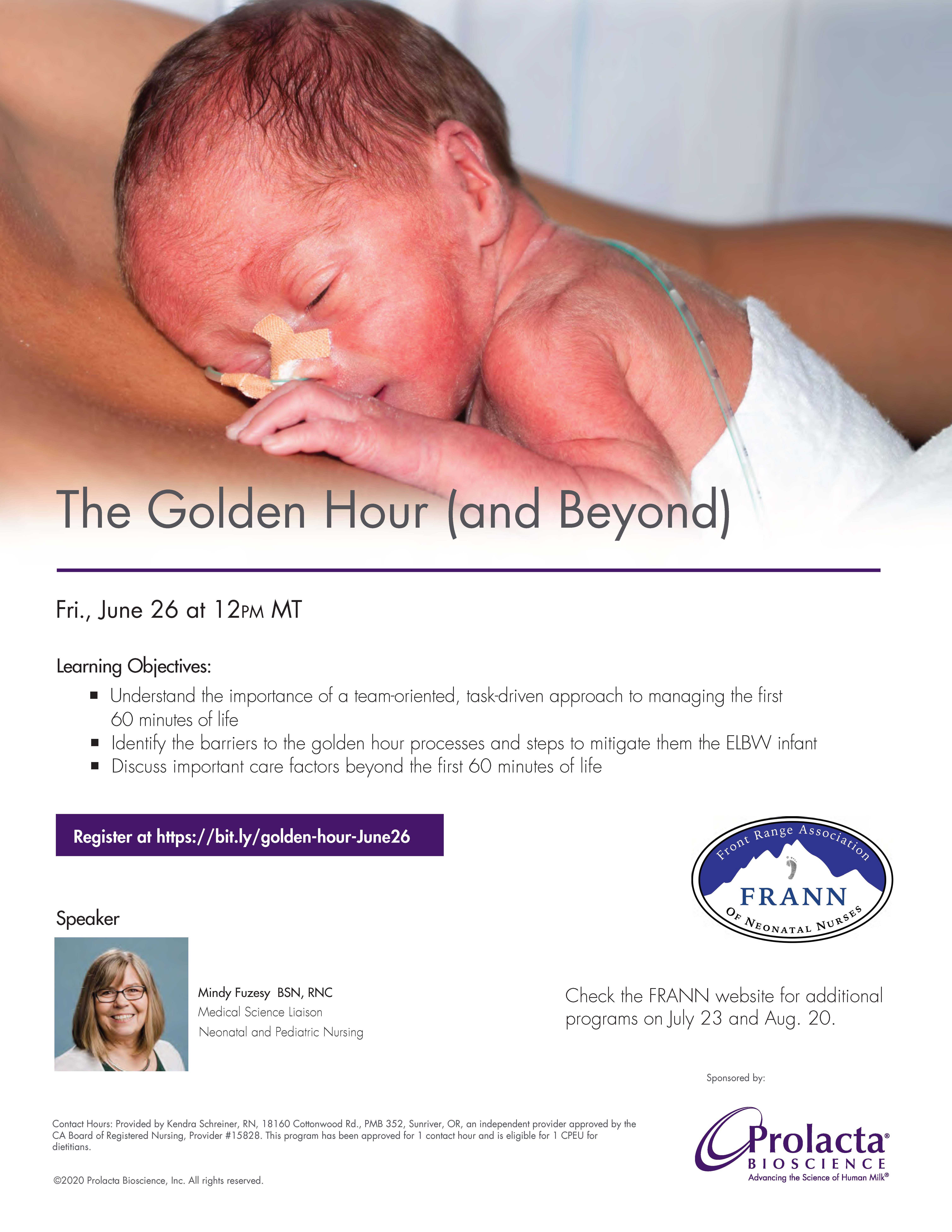 Join us for a one hour webinar presented by Mindy Fuzesy, BSN, RNC, Medical Science Liason and Neonatal and Pediatric nurse to explore the Golden Hour!